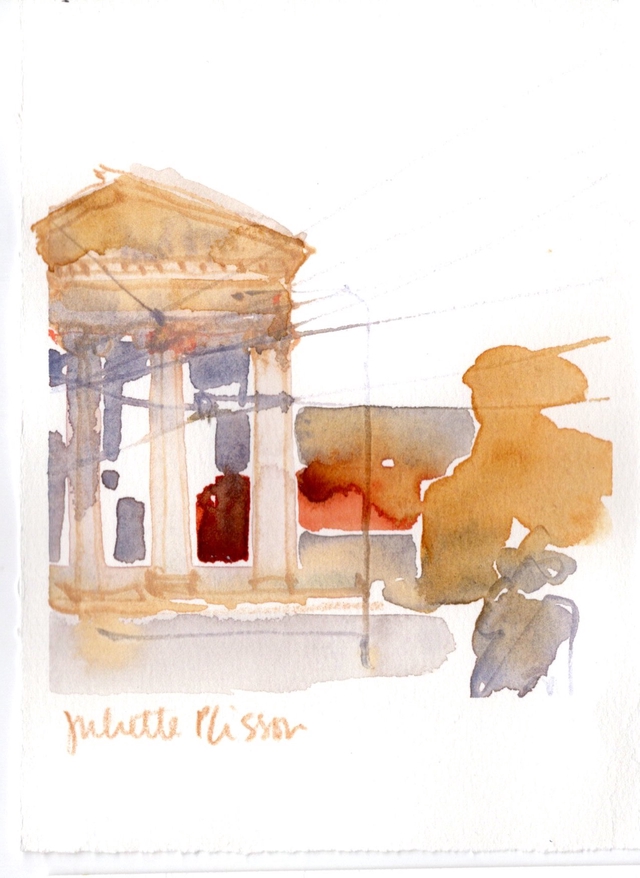 Aquarelle originale et unique, type photo de voyage,10x15, vue de Milan.