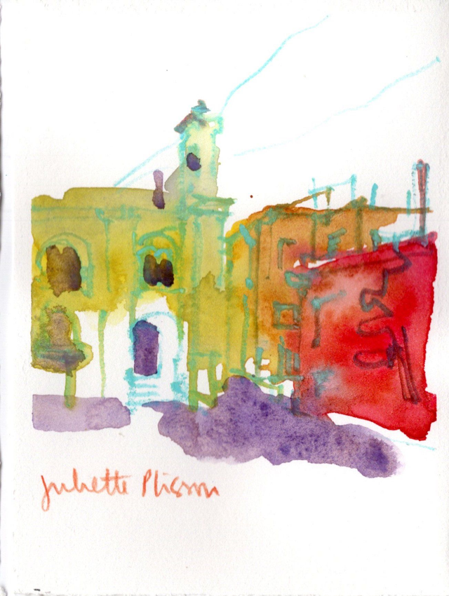 Aquarelle originale et unique, type photo de voyage, 10x15 cm, vue d'Athènes.